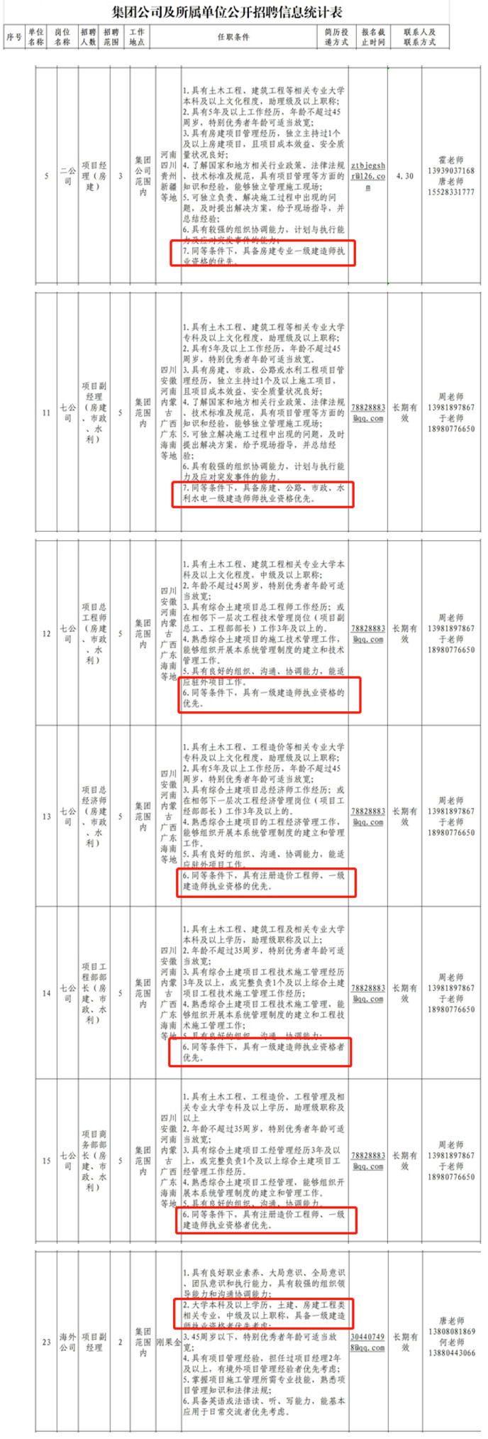 其中:中鐵八局本部部門14人,二公司所屬項目部14人,三公司機關(guān)部門4人、所屬經(jīng)營聯(lián)絡(luò)點4人,七公司所屬項目部25人,物流公司機關(guān)部門2人、所屬實體單位11人,海外公司所屬項目部24人。