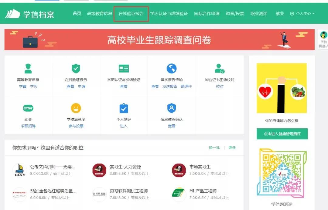 第二步,成功登錄后,點(diǎn)擊頂部菜單中的“在線驗(yàn)證報(bào)告”欄目。