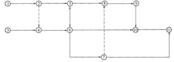 解析:繪圖錯(cuò)誤有四處:起始節(jié)點(diǎn)有兩個(gè),出現(xiàn)雙向箭頭,出現(xiàn)無方向箭頭,當(dāng)箭線交叉不可避免時(shí),可用過橋法或指向法。故本題正確選項(xiàng)為C。