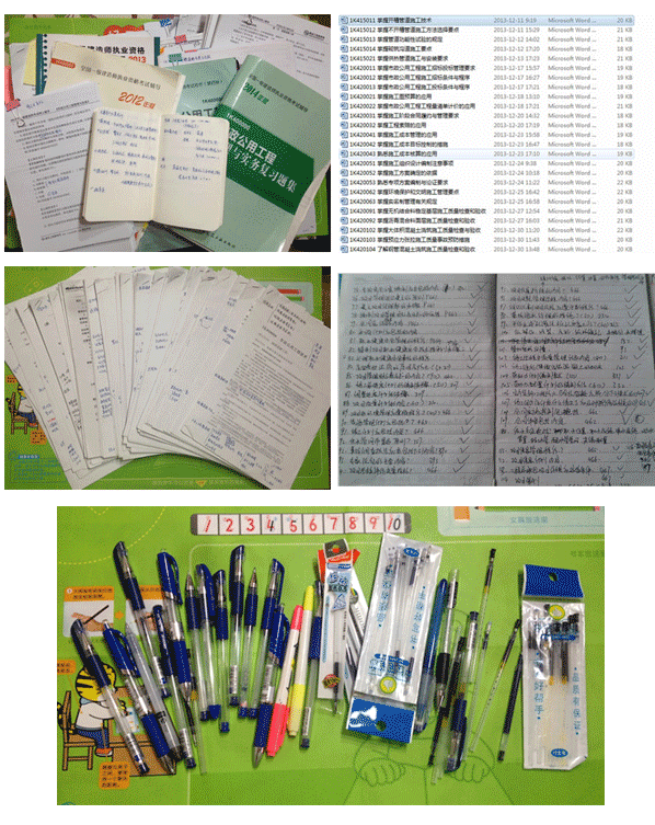 書桌子上擺滿了復(fù)習(xí)資料,電腦簡直成資料庫了。日日夜夜復(fù)習(xí),劃重點(diǎn),做筆記,做題……