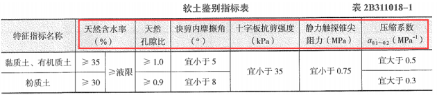 【解析】軟士可按表2B311018-1進(jìn)行鑒別。當(dāng)表中部分指標(biāo)無(wú)法獲取時(shí),可以天然孔隙比和天然含水率兩項(xiàng)指標(biāo)為基礎(chǔ),采用綜合分析的方法進(jìn)行鑒別。