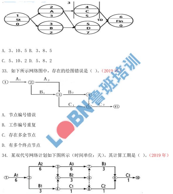 【解析】兩個節點之間只能有一條箭線,或兩個工作節點編號不能相同。