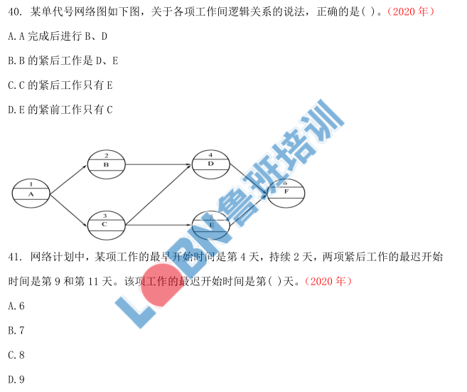 【解析】A 錯誤,A 完成后 B、C。B 錯誤,B 的緊后工作是 D。C 錯誤,C 的緊后工作有 D、