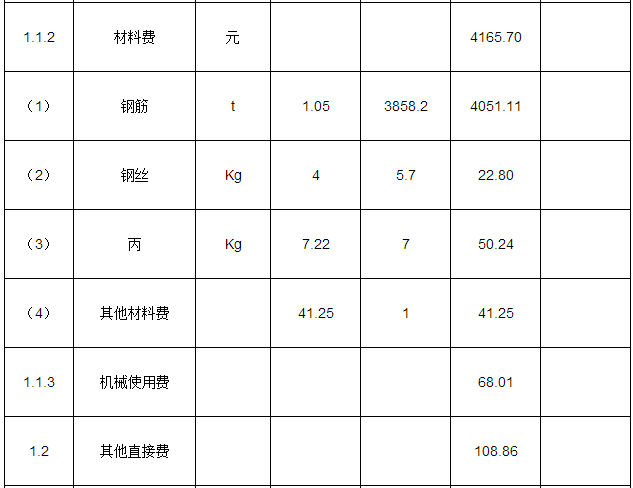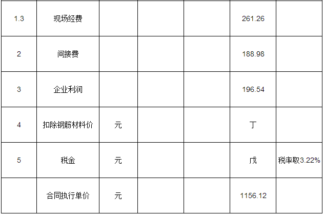(2)計(jì)算扣除鋼筋材料價(jià)(丙)和稅金(戊)(計(jì)算結(jié)果保留兩位小數(shù));