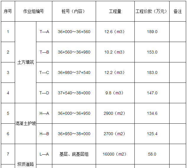 表5-1 主要工程內(nèi)容、工程量及工程價(jià)款