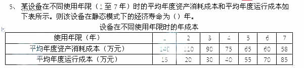 【 名師解析】 靜態模式下,不考慮資金的時間價值.則年平均1 吏用成本=min {平均年資產消耗成本書平均年度運行成本}40 .即4 年為該設備的經濟壽命.參見教材P58 .