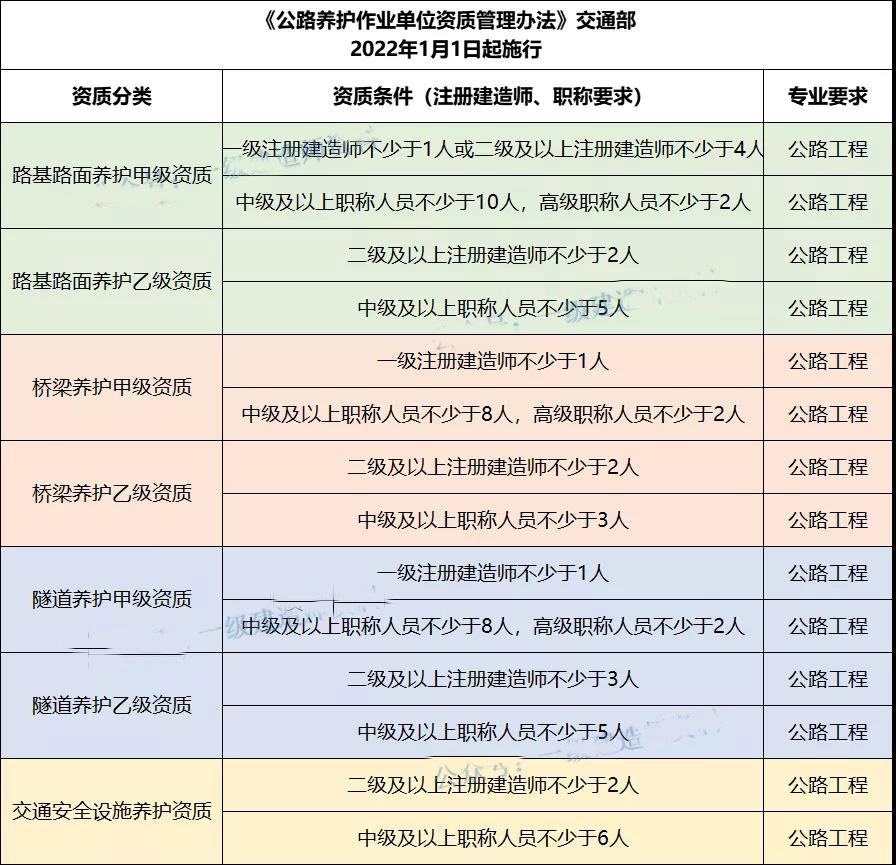 《公路養(yǎng)護(hù)作業(yè)單位資質(zhì)管理辦法》即將于2022年1月1日起施行。《辦法》新增并明確了對(duì)建造師、職稱人數(shù)的需求(如下圖),新的管理辦法將對(duì)公路專業(yè)的一級(jí)建造師和二級(jí)建造師需求有所影響,想從事公路、橋梁、隧道工作的考生機(jī)會(huì)來了,不要錯(cuò)過,魯班培訓(xùn)2022年一級(jí)建造師和二級(jí)建造師面授課程年前大促正在進(jìn)行中,歡迎咨詢魯班培訓(xùn)。