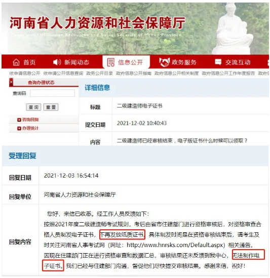 再加上近期多地二建都在領(lǐng)證中,著急的考生便去官網(wǎng)進(jìn)行咨詢(xún),并得到了回復(fù)。