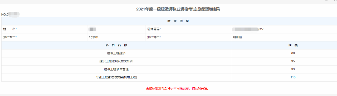 2021年一級建造師成績可查了