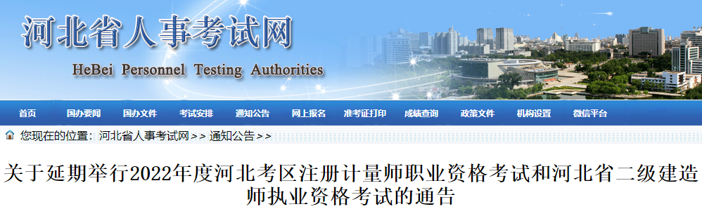 關于延期舉行2022年度河北考區注冊計量師職業資格考試