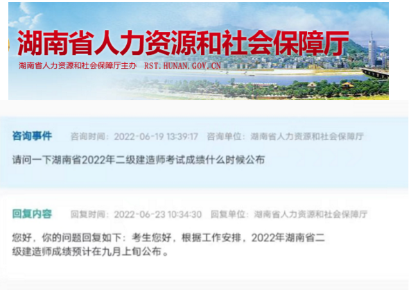 二建考后,不少考生在后臺咨詢二建成績何時公布,之前小編發(fā)布的文章里有公布山西、遼寧、廣東、廣西、黑龍江等地的成績發(fā)布時間。近日,根據(jù)湖南省人力資源和社會保障廳在線問答得知,2022年湖南二建考試成績成績預(yù)計在9月上旬公布,小編將詳情整理如下,快來一起來看看吧~