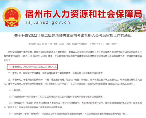 安徽:2022年二建考后資格審核已開始!