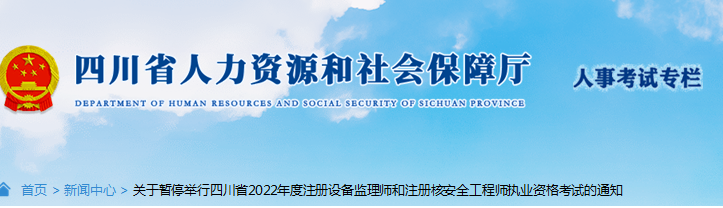 關于暫停舉行四川省2022年度注冊設備監理師和注冊核安全工程師執業資格考試的通知