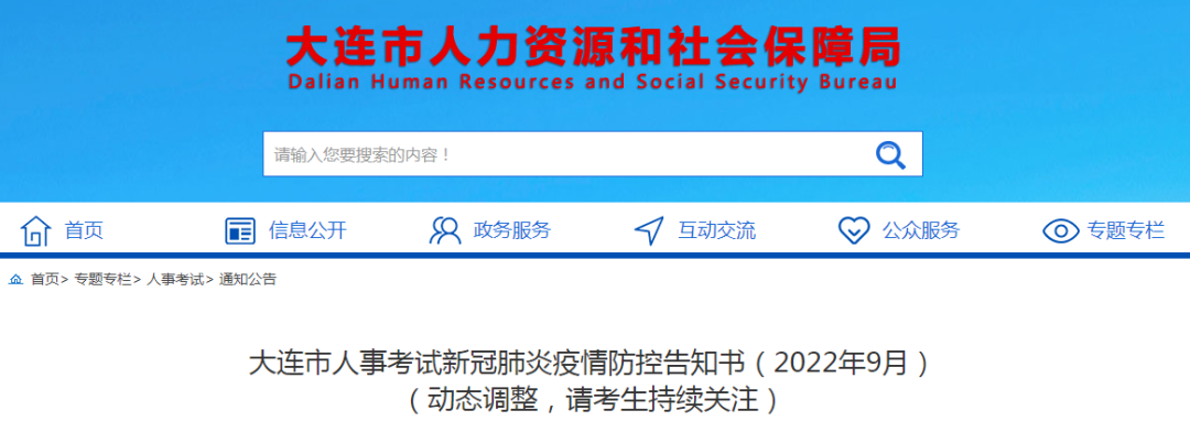 1.考生應認真閱讀《大連市人事考試新冠肺炎疫情防控告知書(2022年9月)》,提前打印準考證并做好相應準備。考生打印準考證即視為閱知并認同告知書內容。如違反相關規定,自愿承擔相關責任、接受相應處理。