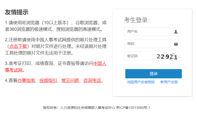 使用中國(guó)人事考試網(wǎng)提供的照片處理工具對(duì)照片文件進(jìn)行處理,未經(jīng)該照片處理工具處理的照片文件無法用于注冊(cè)。