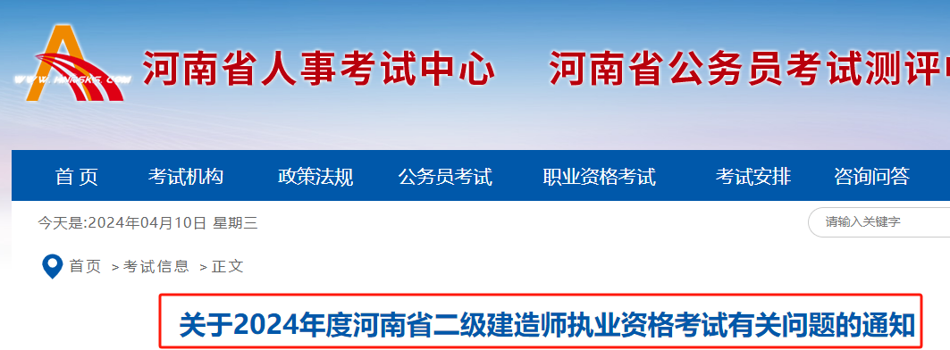 關(guān)于2024年度河南省二級建造師執(zhí)業(yè)資格考試有關(guān)問題的通知