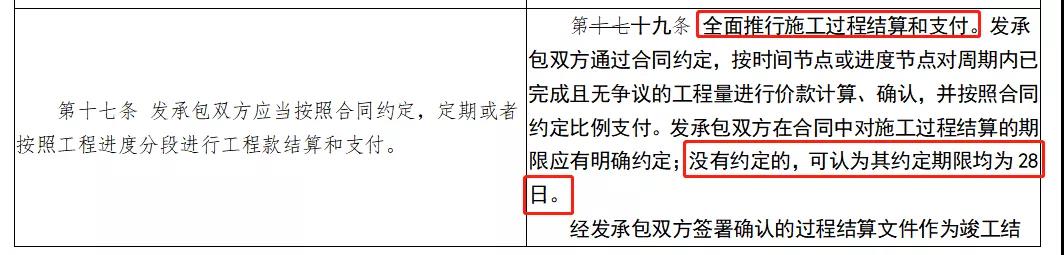 ● 發承包雙方在合同中對施工過程結算的期限應有明確約定;沒有約定的,可認為其約定期限均為28日。