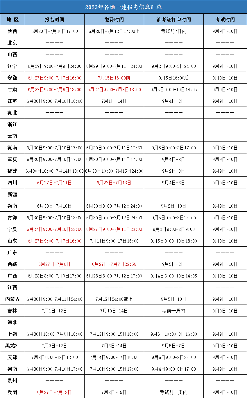 近日,又新增天津、上海、黑龍江、寧夏、重慶、兵團幾地發(fā)布了2023年一級建造師相關(guān)的報考通知,通知中明確了報名繳費時間以及其他幾個重要的時間信息。下面給大家進行一個匯總并展示在下方~