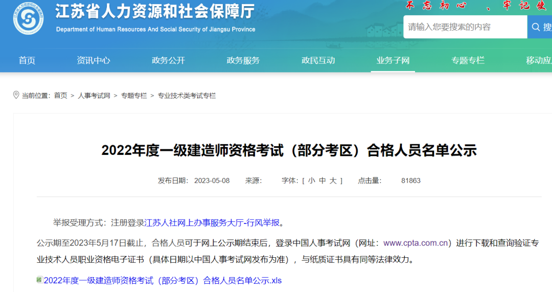 根據(jù)江蘇人社廳發(fā)布的合格人員名單公示,2022年江蘇省二級(jí)建造師資格考試合格人數(shù)為 40801 人。