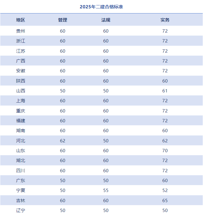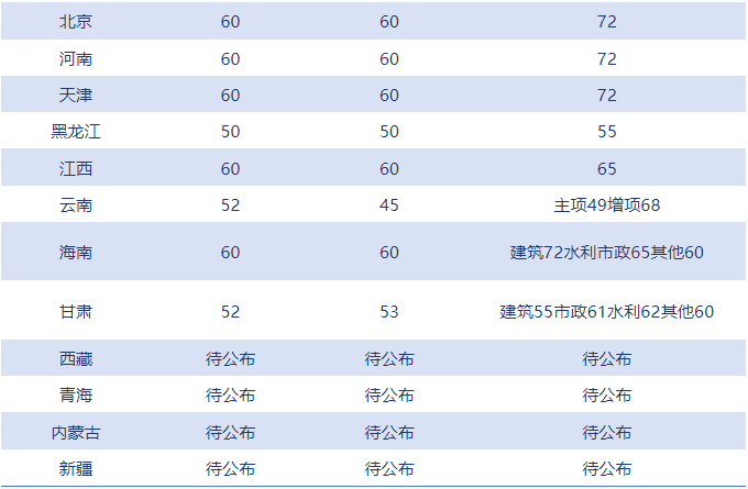 同時(shí),以上大部分地區(qū)的二建合格線也已公布,另外西藏、青海、內(nèi)蒙古、新疆的二建合格標(biāo)準(zhǔn)需待有關(guān)部門(mén)確定后另行公布。