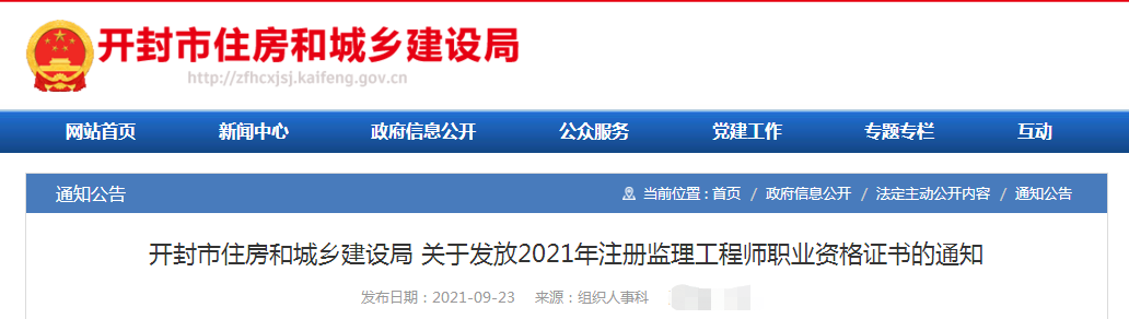 今日,開封市住房和城鄉建設局發布了《開封市住房和城鄉建設局關于發放2021年注冊監理工程師職業資格證書的通知》,通知(《開封市住房和城鄉建設局關于發放2021年注冊監理工程師職業資格證書的通知》以下簡稱通知)要求通過2021年注冊監理工程師職業資格考試通過的考生即日起(工作日上午:8:30--12:00; 下午:2:30--6:00)到開封市住房和城鄉建設局(鄭開大道與八大街交叉口向北500米路東,市直機關綜合辦公樓)638房間領取自己的證書,須本人領取的,領取時攜帶本人身份證原件及復印件;考生委托他人領取的,需提供考生本人身份證原件、復印件、委托書及委托人身份證原件、復印件(驗原件留復印件);證書領取不提供郵寄服務。聯系電話:0371-23991280,建議如必要請先撥打聯系電話確認,以免不必要的麻煩。