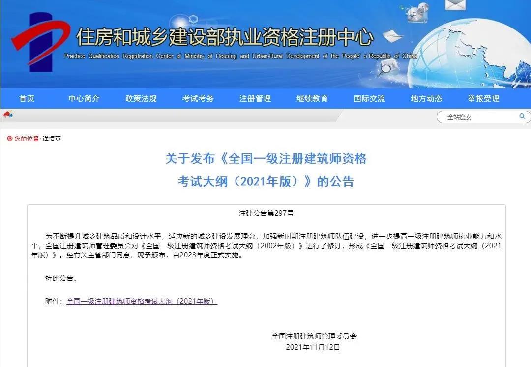 昨日,為加強新時期注冊建筑師隊伍建設,推動注冊建筑師執業資格考試改革,提高一級注冊建筑師執業能力和水平,住房和城鄉建設部執業資格注冊中心官網發布:《全國一級注冊建筑師資格考試大綱(2021版)》,新大綱的考試科目由 9門調整為6門。