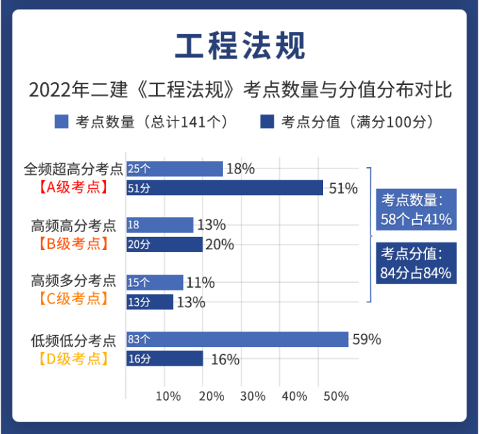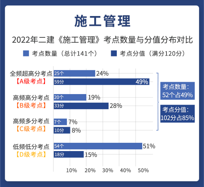 部分實務(wù)科目的考點較為分散,所以A、B級考點較少,但即便如此,A、B級考點總分值依然能達(dá)到60-100分,非常可觀!對于通過考試,這些分值,可謂不得不拿!