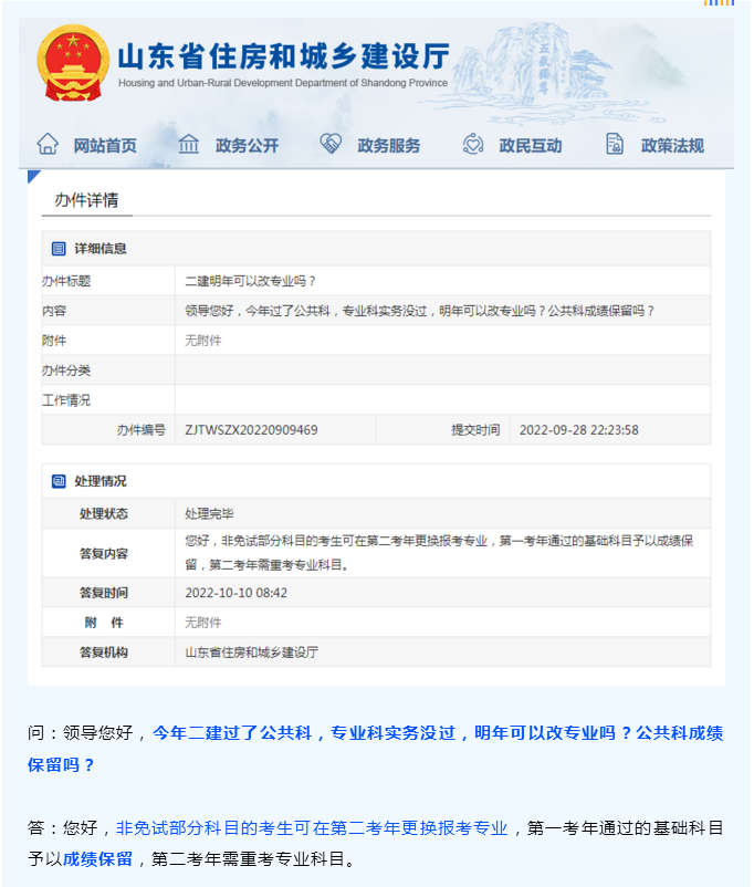 問:領(lǐng)導(dǎo)您好,今年二建過了公共科,專業(yè)科實(shí)務(wù)沒過,明年可以改專業(yè)嗎?公共科成績保留嗎?