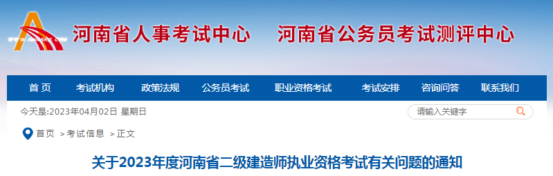 關于2023年度河南省二級建造師執業資格考試有關問題的通知