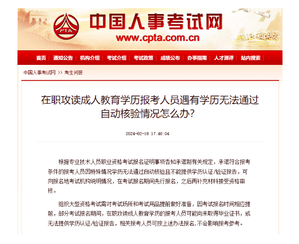 近日,人事網(wǎng)發(fā)了一篇答疑公告:《在職攻讀成人教育學(xué)歷報(bào)考人員遇有學(xué)歷無法通過自動核驗(yàn)情況怎么辦?》,一起來看看吧!