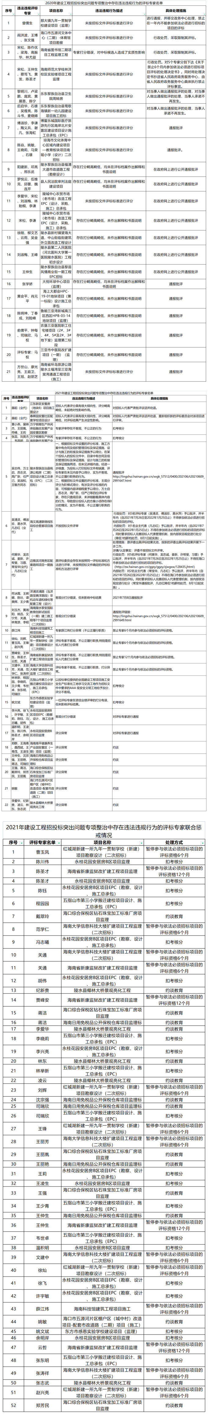 2.2021年建設工程招投標突出問題專項整治中存在違法違規行為的評標專家名單
