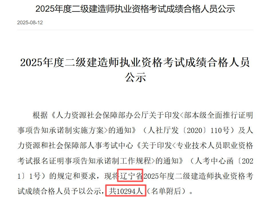 以遼寧為例,2025年二建合格名單顯示只有10294人,與去年公示的12080人相比,少了兩千人。