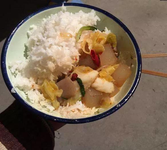 工人們中午只有一個多小時的時間休息,下班后就拿著自己的飯盒急急忙忙去打飯,一碗水煮菜,偶爾有些肉,配上一碗白米飯就是他們的午餐。飯菜是沒有什么油水的,但他們還得吃,吃不飽下午是干不動活的,越是要付出體力的工作,吃的卻也越粗糙簡單。只是為了保持體力,就多吃點,再短暫地瞇上一會,才經得起下午超負荷的工作。