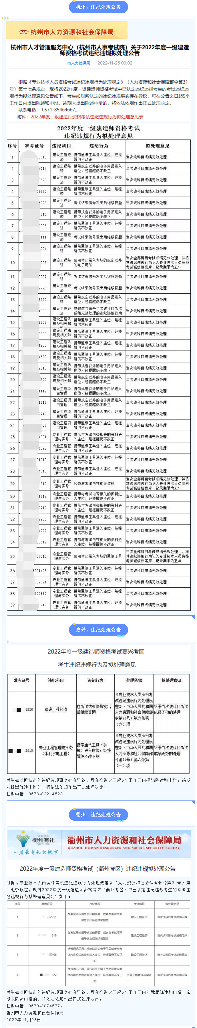 你沒看錯,真的有一批考生已經已經成績作廢了。首批一建考生違紀違規通報已發布:涉及杭州、衢州、嘉興3地。