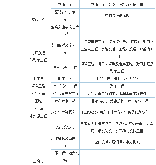 1、本表按教育部現行《普通高等學校本科專業目錄新舊專業對照表》編制,共涉及“土建類、測繪類、水利類、交通運輸類、能源動力類、地礦類、材料類、電氣信息類、機械類、管理科學與工程類、生物工程類、化工與制藥類、工程力學類”等18類45個專業,其中本專業100個,相近專業9個。