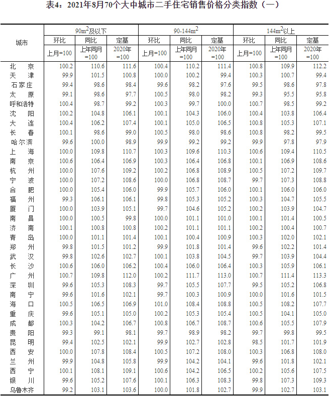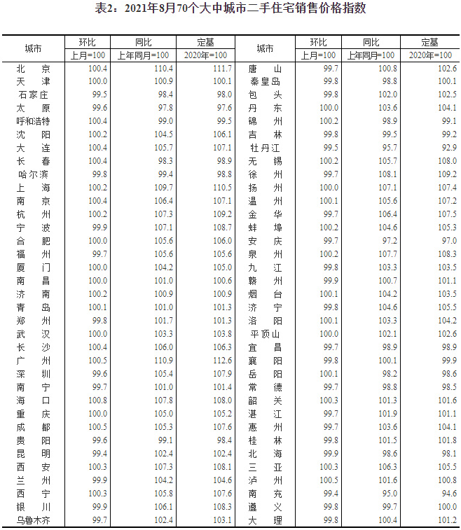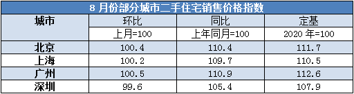 來源:國家統計局官網,原標題:8月份70城房價發布 北上廣深二手住宅環比漲幅均回落