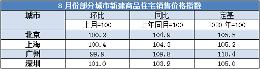 據測算,8月份,一線城市新建商品住宅銷售價格環比上漲0.3%,漲幅比上月回落0.1個百分點。其中,北京、上海和深圳環比分別上漲0.2%、0.4%和1.0%,廣州由上月上漲0.2%轉為下降0.1%。