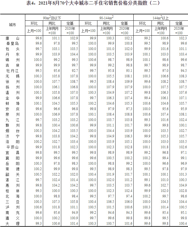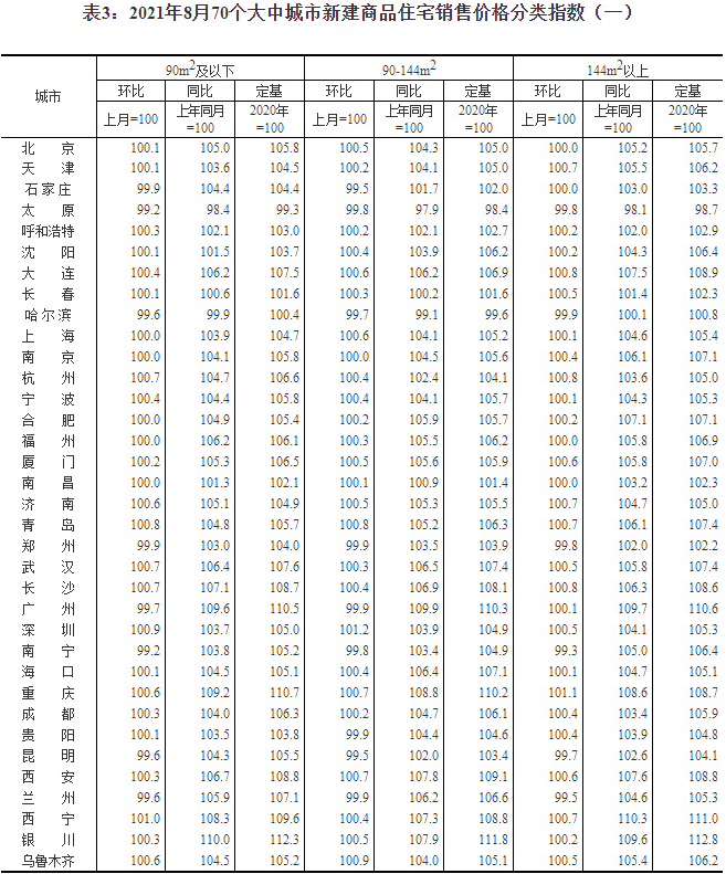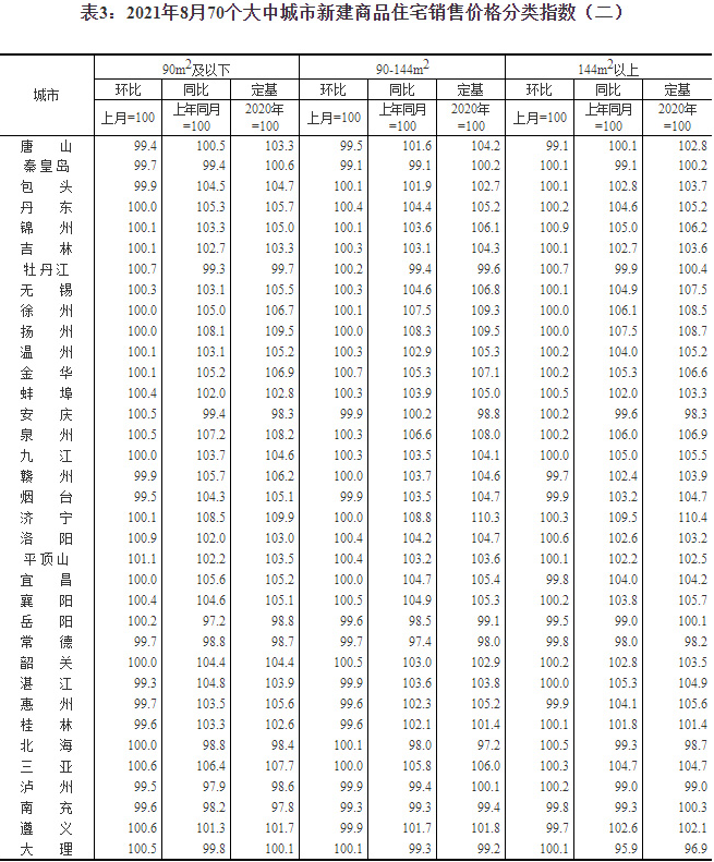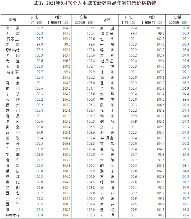 日前,國家統計局發布2021年8月份70個大中城市商品住宅銷售價格變動情況。國家統計局城市司首席統計師繩國慶表示,2021年8月份,各地全面落實房地產長效機制,持續加強房地產市場調控,70個大中城市商品住宅銷售價格環比、同比漲幅總體延續回落態勢。