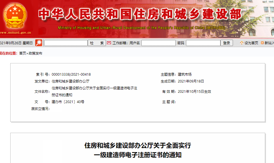剛剛,住建部發(fā)布通知,決定在全國范圍內實行一級建造師電子注冊證書,并開展延續(xù)注冊工作。
