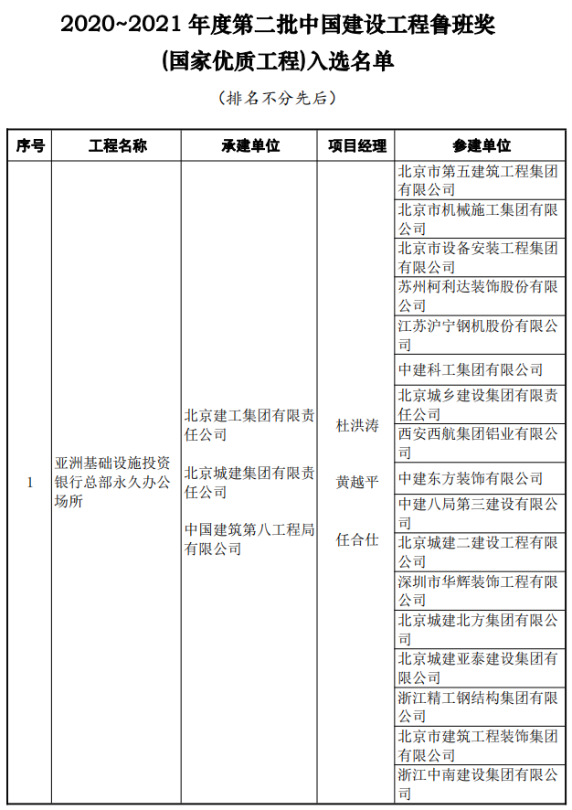 2020~2021年度第二批中國建設工程魯班獎(國家優質工程)申報、復查、評審、審定工作已結束,根據《中國建設工程魯班獎評選辦法(2021年修訂)》有關規定,現將入選工程名單公示,公示時間為2021年11月24日至11月30日。如對公示工程有異議,請于公示期內向我會反映,反映的內容應實事求是。以單位名義反映情況的材料應加蓋單位公章,以個人名義反映情況的材料應署實名并提供聯系電話。