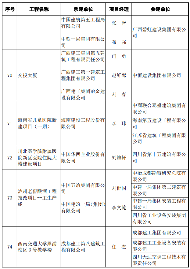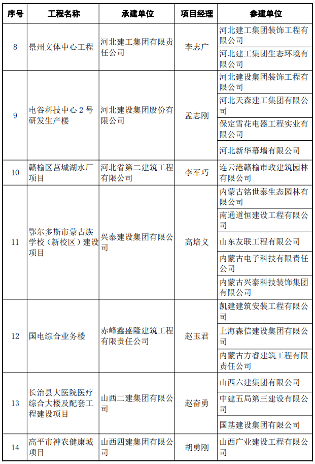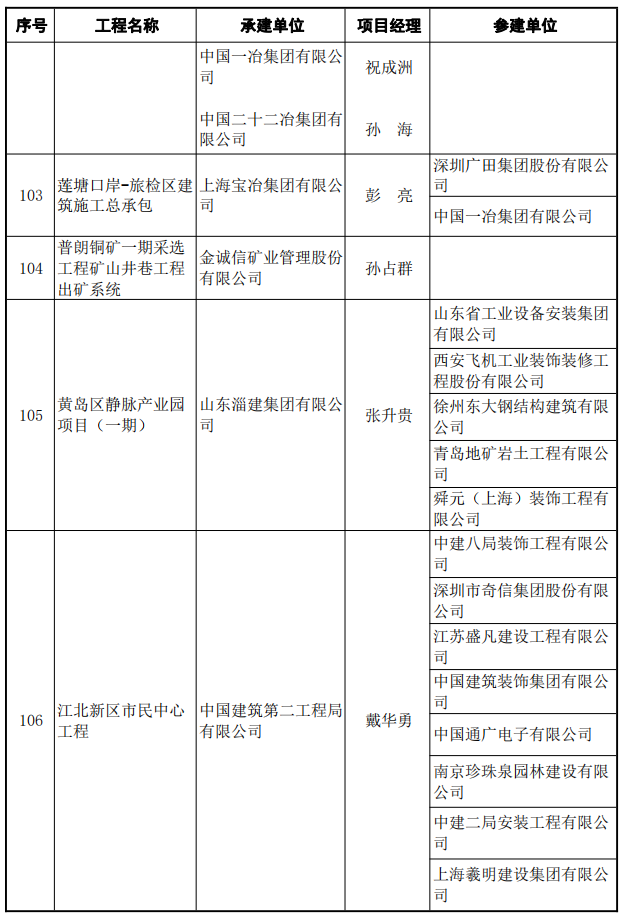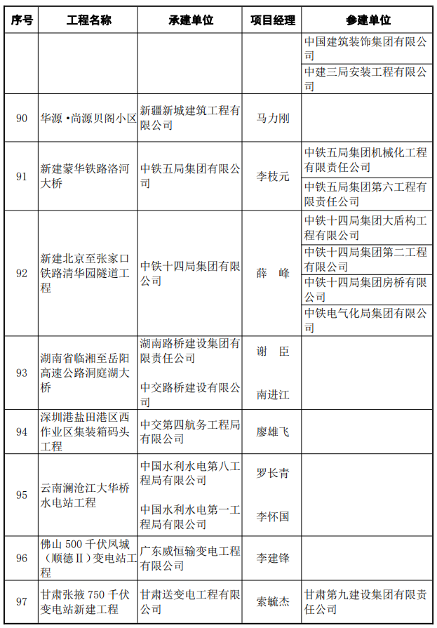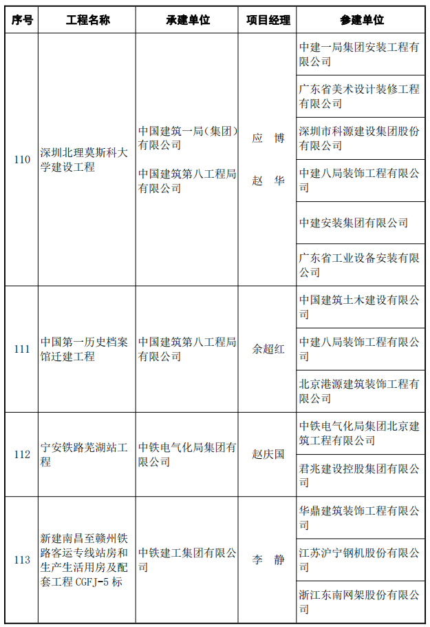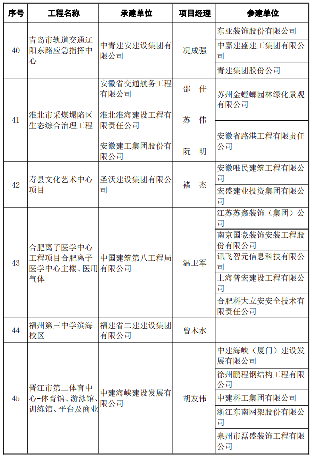 2020~2021年度第二批中國建設工程魯班獎(國家優質工程)入選名單