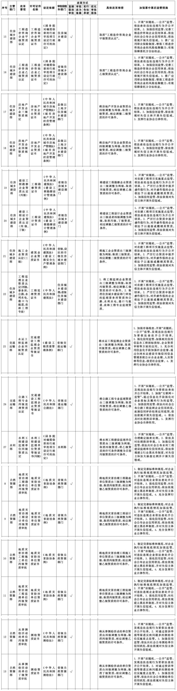 在全國范圍內(nèi)直接取消部分工程資質(zhì)審批,其中包括工程造價(jià)、施工三級(jí)等資質(zhì):