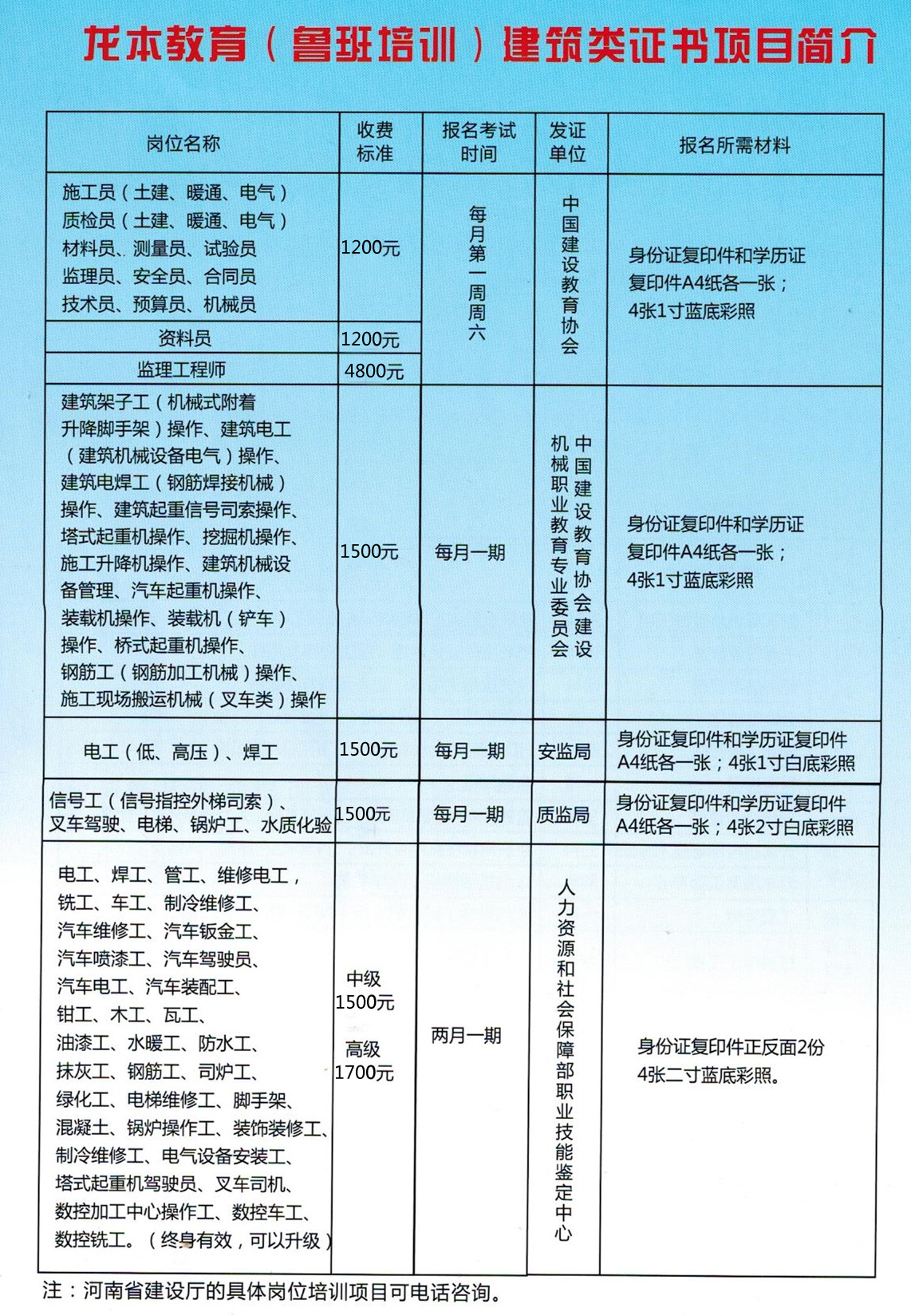 魯班培訓河南分校主營:一級建造師培訓、二級建造師培訓;BIM培訓;消防工程師培訓;造價工程師;監理工程師;安全工程師等建筑人才及企業人才培訓;建筑學歷(鄭州大學、電大等);證書代注冊;技工證;八大員;中級職稱代評等。